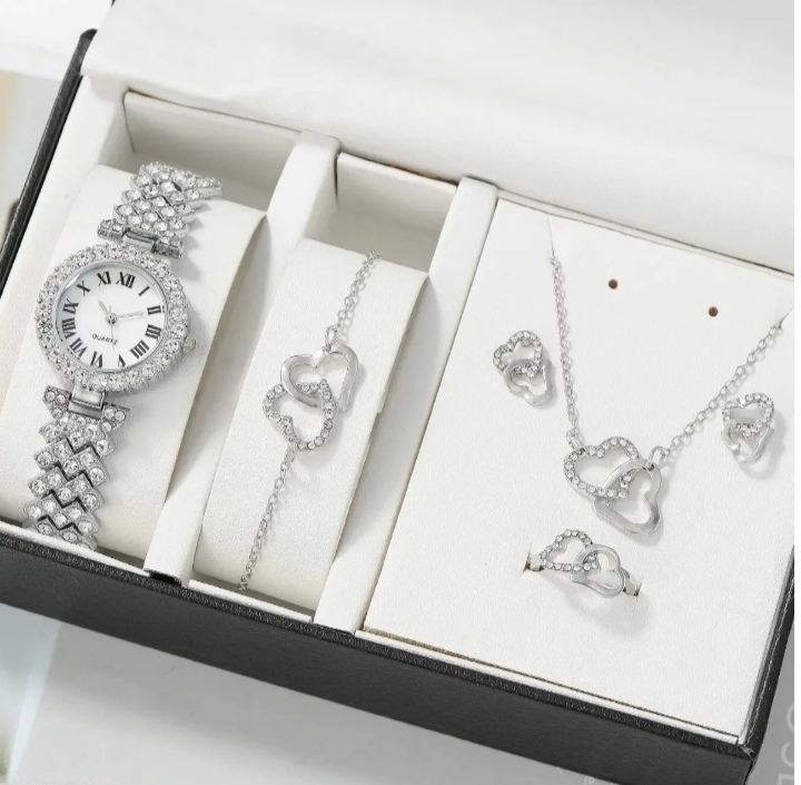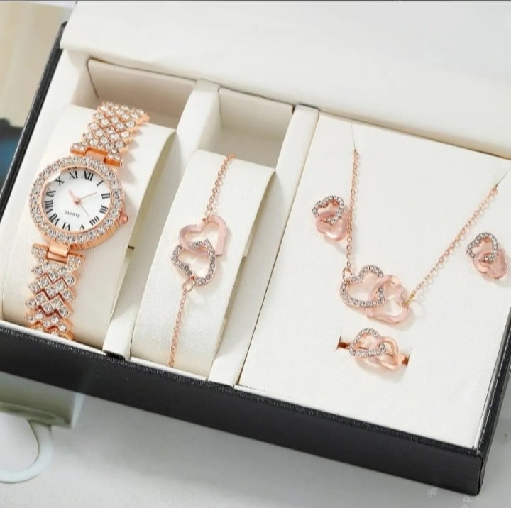 - الطقم ساعة وخاتم وأسورة وسلسلة وحلق.